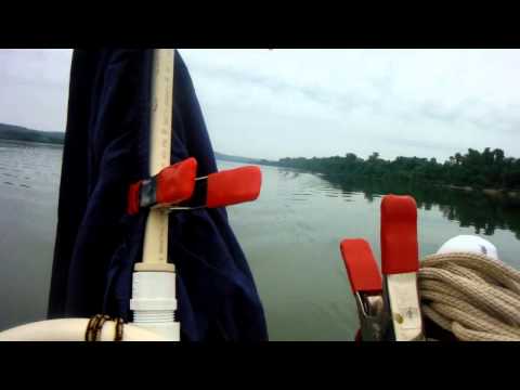 I made it through the Cannelton Lock just in time. The sky in this photo is blue, but right after I locked through dark clouds started coming my way.